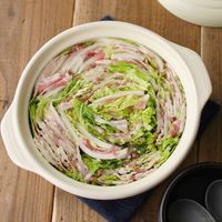 鍋に豚肉と白菜がミルフィーユ状に入っている様子