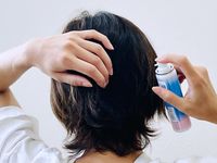 「クーリスト ヘッドクーラー」を頭皮にスプレーしている様子
