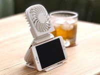 「ハンズフリー5wayスリムファン」でスマートフォンを充電しようとしている様子