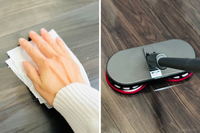 不織布キッチンタオルと電動モップで床を掃除している様子