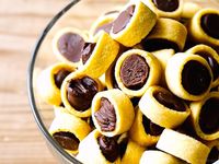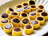 「ポテコ」の穴の中に生チョコを絞ったお菓子