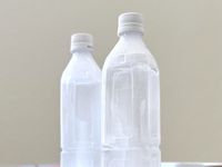 テーブルの上に空のペットボトルが2本置かれている様子