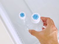 水が入ったペットボトルを冷凍庫に入れている様子