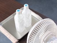 冷凍ペットボトルに扇風機の風を当てている様子