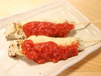 四角い白皿に2本並んだ「とりチーズ焼き」