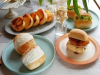 マリトッツォやコロッケパンなど4種のアレンジパンがテーブルに並んだ様子