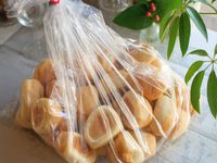 袋に入ったコストコのディナーロールがテーブルに置かれている様子