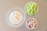 すりおろした山いもと細切りきゅうりとゆで豚肉が並んでいる