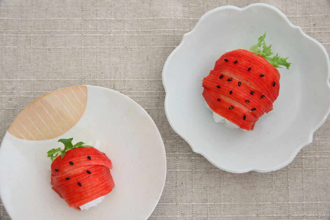 家庭料理やお弁当などの投稿で人気のインスタグラマー るみさん(@ru.ru_rumi)。カニカマとご飯で簡単に作るいちご型のおにぎりを投稿されて、たちまち話題に♪ 今回は、るみさん考案の「いちごおにぎり」の作り方をご紹介します。